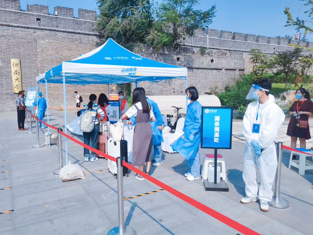 根據(jù)學(xué)校工作安排,結(jié)合當(dāng)前疫情防控形勢,9月14日我校開封校區(qū)、鄭州龍子湖校區(qū)高年級備考本科生、研究生返校報(bào)到。期間,校領(lǐng)導(dǎo)張寶明、馮淑霞及黨委學(xué)生工作部、研究生工作部、總務(wù)處(后勤集團(tuán)總公司)、保衛(wèi)處、信息化管理辦公室、校團(tuán)委、校醫(yī)院等相關(guān)職能部門負(fù)責(zé)人多次到學(xué)生返校報(bào)到點(diǎn)檢查指導(dǎo)工作,看望返校學(xué)生,慰問現(xiàn)場工作人員。