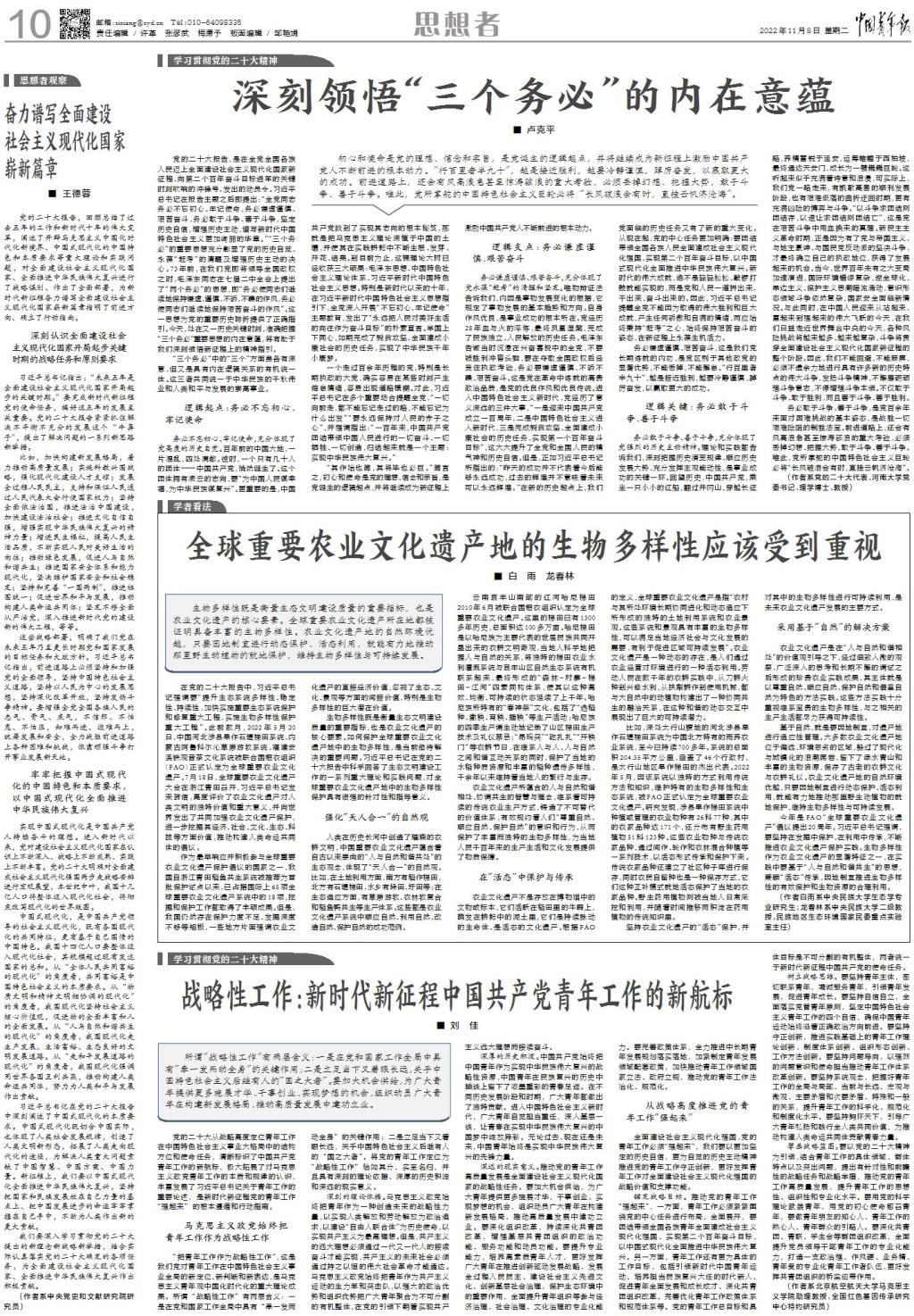 黨的二十大報告,是在全黨全國各族人民邁上全面建設社會主義現代化國家新征程、向第二個百年奮斗目標進軍的關鍵時刻吹響的沖鋒號、發出的動員令。習近平總書記在報告主題之后即提出:“全黨同志務必不忘初心、牢記使命,務必謙虛謹慎、艱苦奮斗,務必敢于斗爭、善于斗爭,堅定歷史自信,增強歷史主動,譜寫新時代中國特色社會主義更加絢麗的華章。”“三個務必”的重要思想充分彰顯了黨的歷史自覺、永葆“趕考”的清醒及增強歷史主動的決心。73年前,在我們黨即將領導全國政權之時,毛澤東同志在七屆二中全會上提出了“兩個務必”的思想,即“務必使同志們繼續地保持謙虛、謹慎、不驕、不躁的作風,務必使同志們繼續地保持艱苦奮斗的作風”。這一思想為黨的重要歷史轉折提供了正確指引。今天,處在又一歷史關鍵時刻,準確把握“三個務必”重要思想的內在意蘊,將有助于我們深刻領悟新征程上的精神指引。