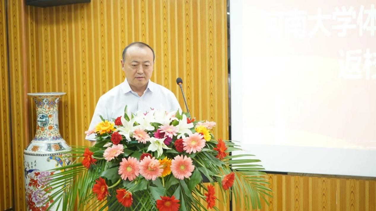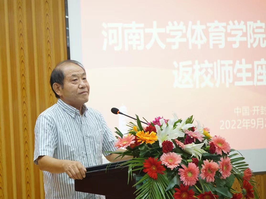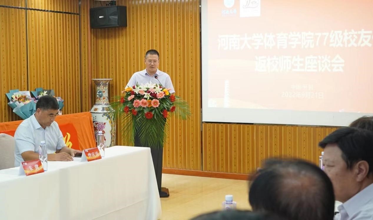 會議伊始,體育學院黨委書記段廷良對在座老教師、校友表示熱烈歡迎。他談到,77級校友如今在河南省乃至全國的體育事業的各條戰線上作出了突出貢獻與成就,是鐵塔體育人的榜樣,是母校的光榮與驕傲。同時他對體育學院建校以來所培養的兩萬三千余名學子表達了歡迎和感謝,感謝他們對學校和學院的持續關注,歡迎大家?;啬感?纯?。體育學院院長周珂同老教師和校友們回顧了體育學院自成立以來的發展歷程,對校友在學院發展過程中匯聚力量、心系母校的情懷表達敬意與感謝。他表示,河大體育人將繼續堅守以學生全面發展為中心、以學術自由發展為宗旨的基本教育理念,為國家培養出更多更優秀的體育人才。