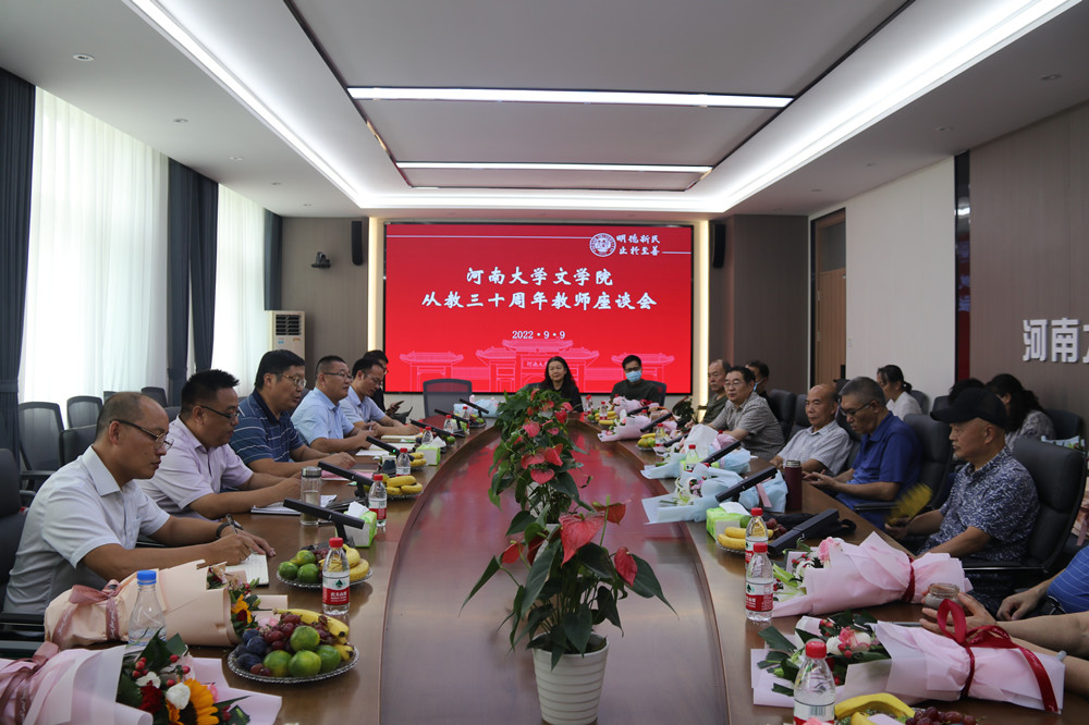 9月9日晚,文學院從教三十周年教師座談會在二樓會議室召開。與會十幾位教齡三十年及以上的教師紛紛分享了自己教學的心得體會以及對學院學科建設發展的建議。本次座談會旨在于教師節來臨之際對學院教師為學院發展作出的貢獻與努力表達感謝與敬意。