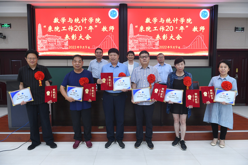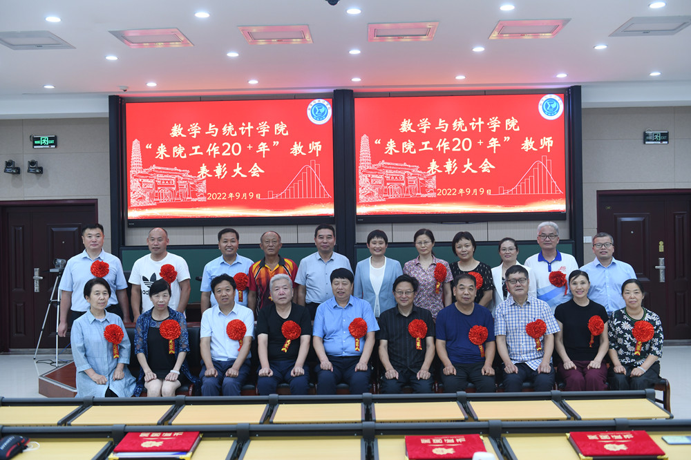 為慶祝全國第38個教師節,表彰先進教師,致敬辛勤工作在教學、管理一線的教職員工,9月9日下午,數學與統計學院在學院南階梯教室舉行“來院工作20+年”教師表彰大會。出席表彰大會的有校黨委常委、副校長馮淑霞,學院領導班子成員,受表彰的教師和部分教師代表、各年級學生代表等與會。會議通過線上線下相結合方式開展,由院長韓小森主持。