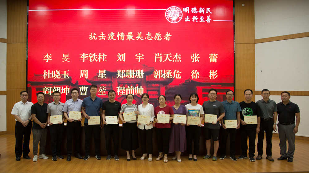 頒獎儀式結束后,院黨委書記呂冰代表學院黨政領導班子向全體教職工致以節日問候,向受到表彰的同志表示祝賀。他表示,抗擊疫情期間,學院全體教職工都能做到積極配合開封市工作安排,嚴格遵守防疫規定,為打贏疫情防控阻擊戰作出貢獻。學院教師在危難時刻敢于挺身而出,主動奉獻抗“疫”力量,體現了作為教師的博愛胸懷。新學期伊始,在疫情防范常態化的今天,希望學院全體教工能以踔厲奮發、篤行不怠的姿態,投入到教學科研管理當中,進一步為學院事業發展和河南大學“雙一流”建設貢獻力量,用優異成績迎接黨的二十大勝利召開!