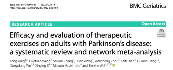 2022年10月21日,河南大學生命科學學院腦科學研究所魏建設教授研究團隊在國際醫學頂級期刊BMC Geriatrics(一區Top,IF =4.070)發表了題為“Efficacy and evaluation of therapeutic exercises on adults with Parkinson’s disease:a systematic review and network meta-analysis”的最新研究論文,揭示了不同運動方式和類型在帕金森病運動和非運動癥狀療效改善方面的綜合評定效果。